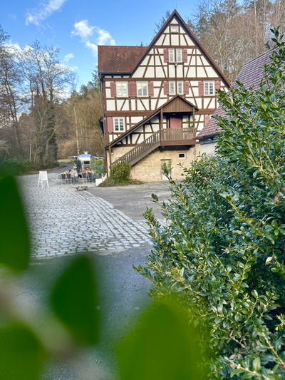 In unseren historischen Innenräumen des Restaurants servieren wir schwäbische À-la-carte-Gerichte, im Sommer ergänzt durch eine Gartenwirtschaft im Innenhof. Die naturnahe Umgebung und das historische Gebäude machen die Mäulesmühle zudem zum idealen Ort für Firmen- und Familienfeiern.