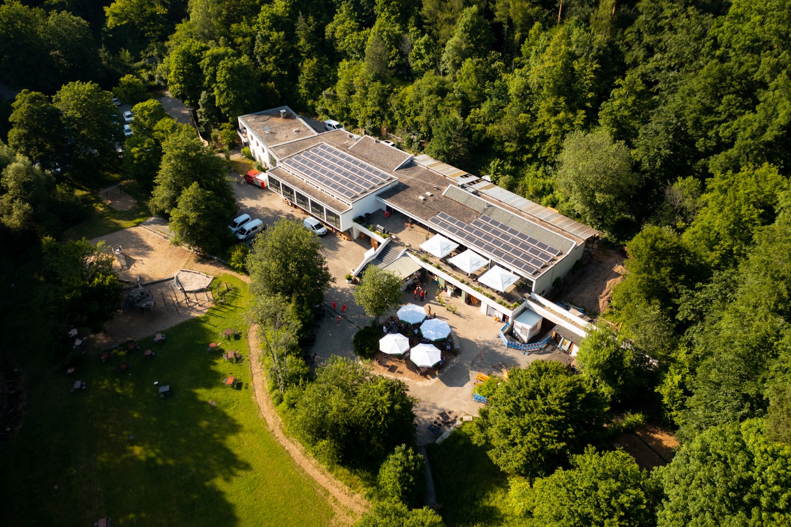 Freut euch zudem auf einen großen Biergarten, einen Spielplatz, einen idyllischen Bachlauf und weitläufige Wiesenflächen im Sommer. Als besonderes Highlight wartet ein eigener Kletterpark mit zehn verschiedenen Kletterrouten – perfekt für kleine und große Abenteurer. Schaut gerne auch mal auf der dortigen Website vorbei.